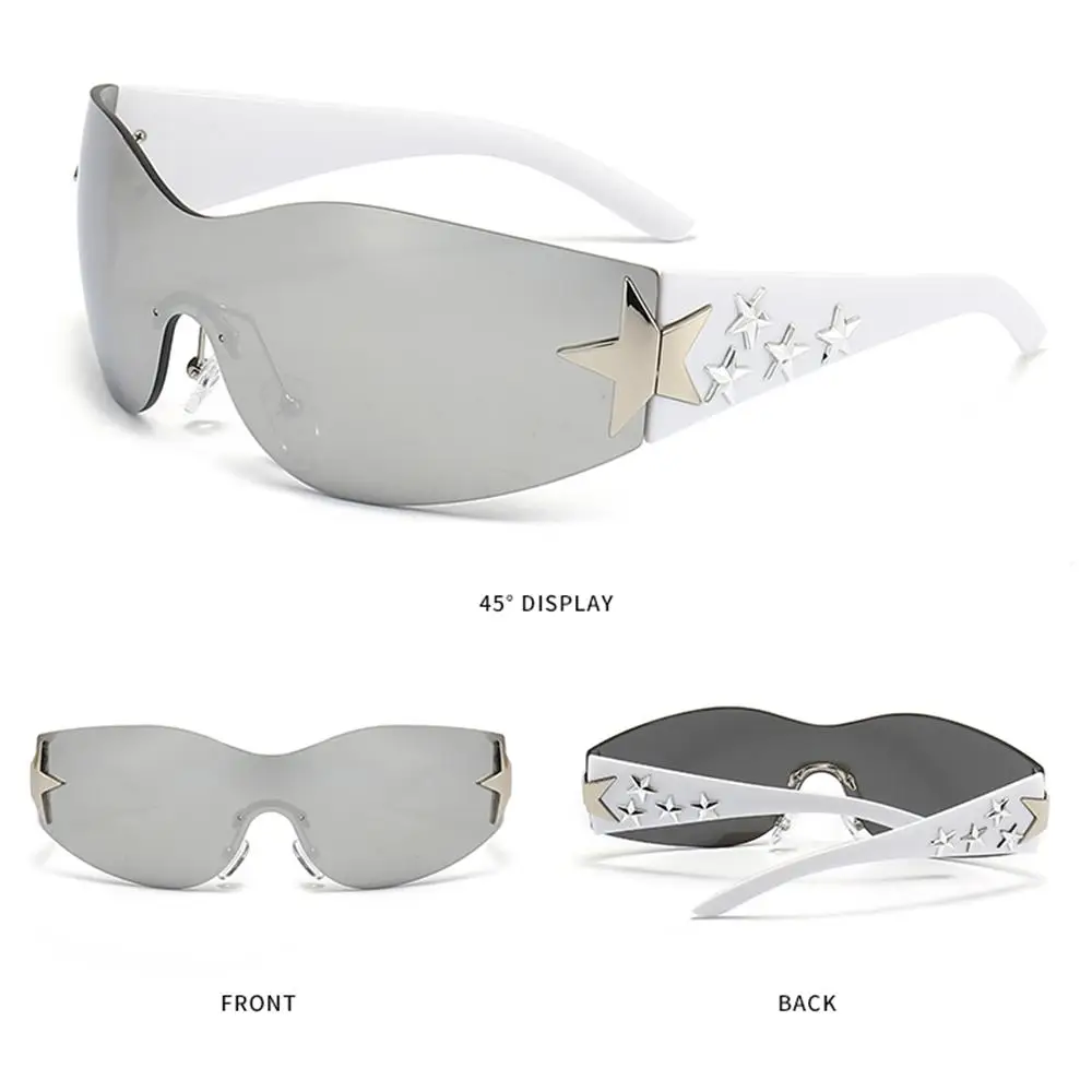 – 2000s Aesthetic Design: Embrace the trendy 2000s aesthetic with our rimless y2k sunglasses. The oversized frameless shield design wraps around your eyes, perfectly contouring to your face and creating a stylish look. It’s a must-have accessory for anyone embracing the Y2K fashion.